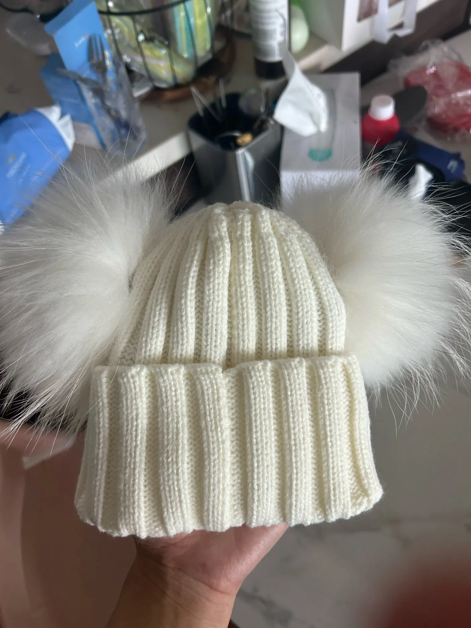 ✔️ Playful double pom poms for added style